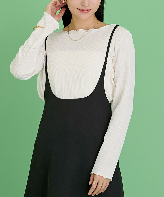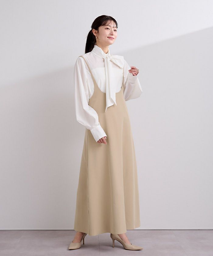 レイヤードするアイテムによって、ロングシーズン着回せる万能ワンピースです。