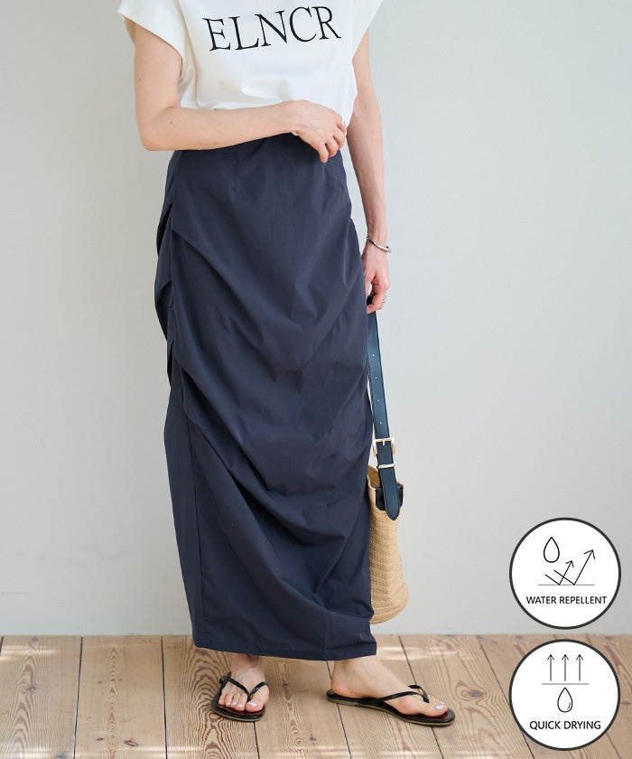 水辺のシーンからデイリーまで活躍する、水陸両用の撥水スカート。