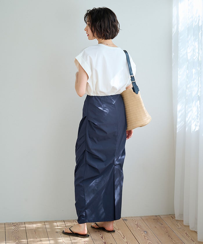 アクティブなシーンはもちろん、普段使いにも取り入れやすい、程よいハリ感とモードなタックデザインが魅力です。