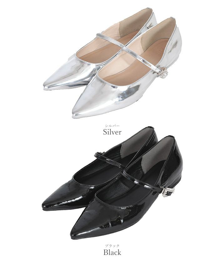 シャープなポインテッドトゥが女性らしさを引き出しエレガントな印象に。
