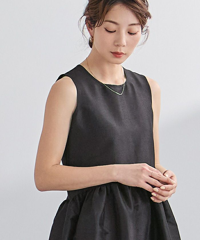 肩まわりをすっきり見せるノースリーブデザインで、涼しげな印象に仕上がります。