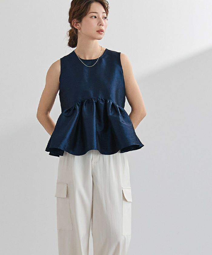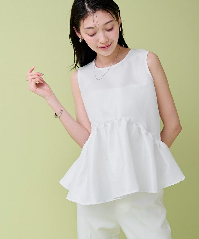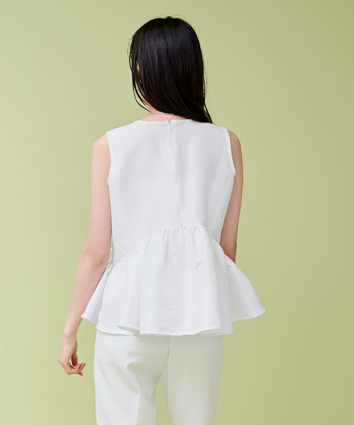 構築的なシルエットが一番のポイントのペプラムトップス。