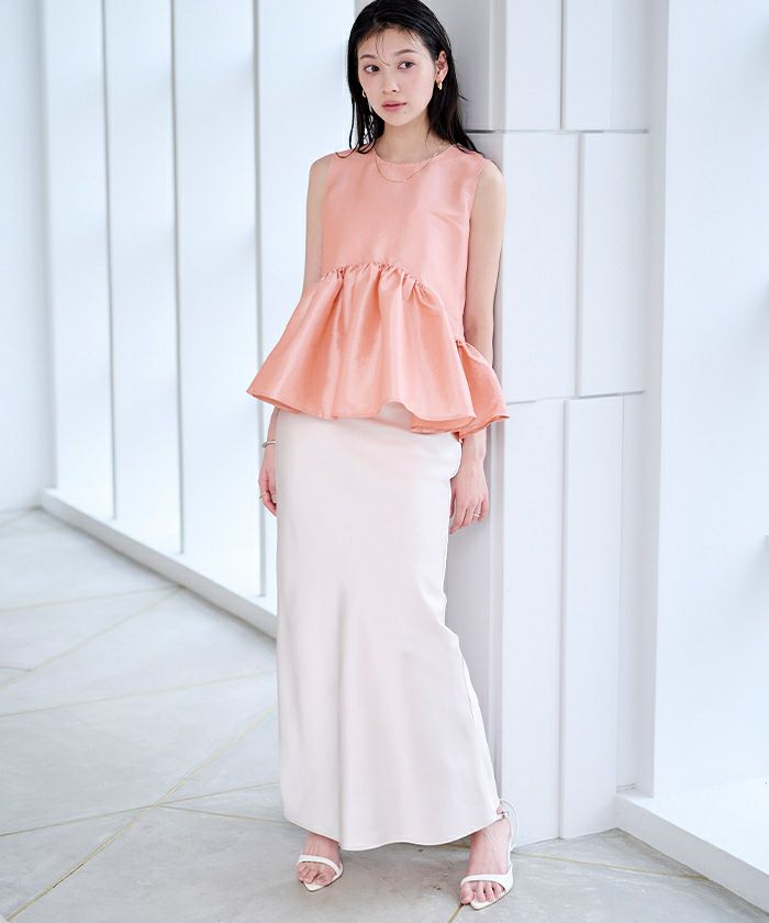 光沢感のある素材が動くたびに表情を見せ、1枚で華やかに気映えします。