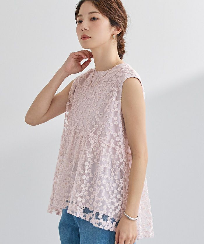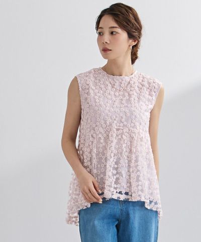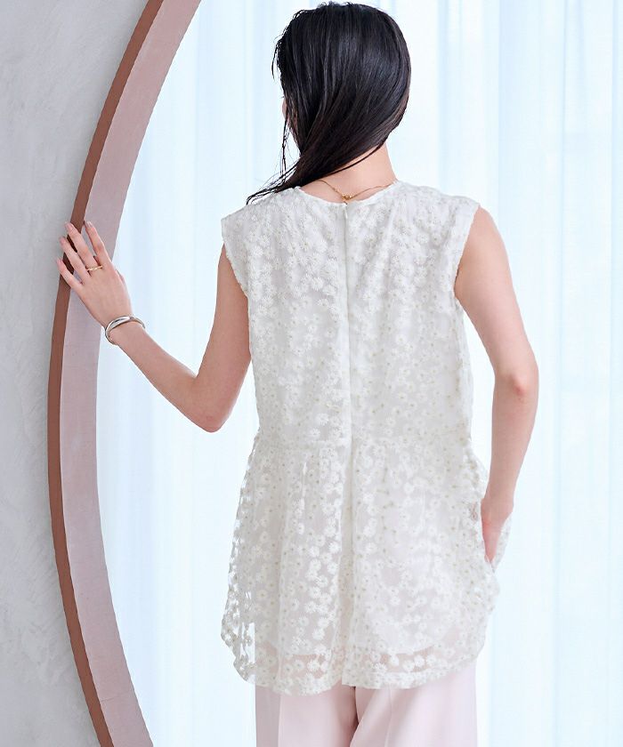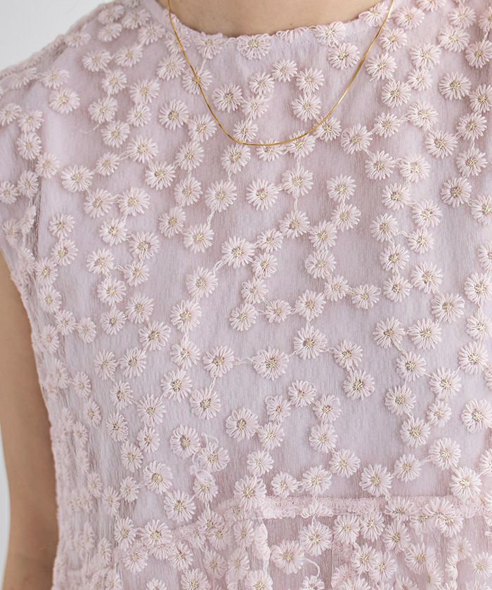 立体的な刺繍レースを使用し、繊細ながらも程よい張り感がある素材です。