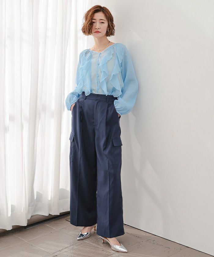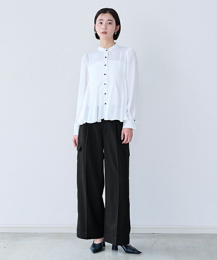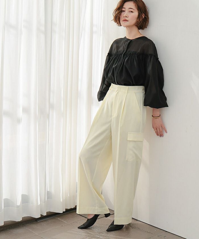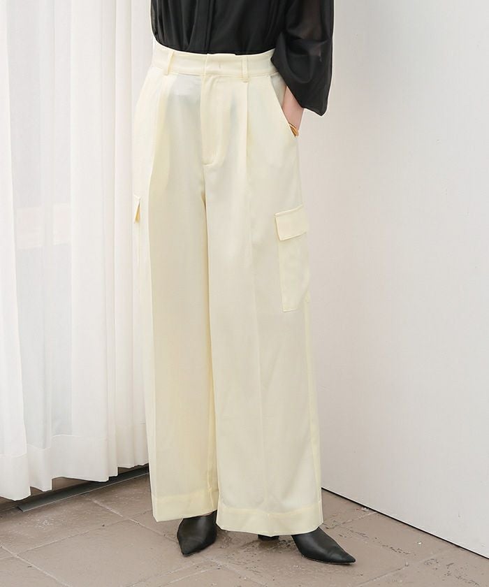 脇にあしらった大きめのポケットがデザインポイントで、程よくトレンド感をプラス。