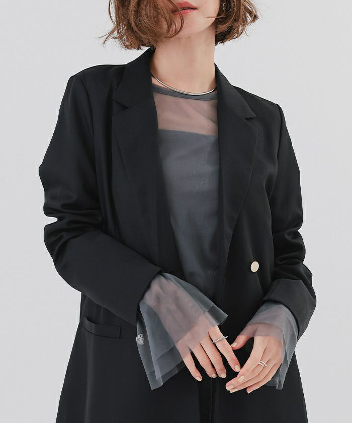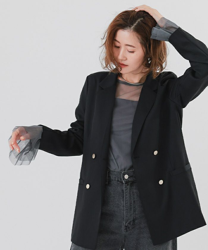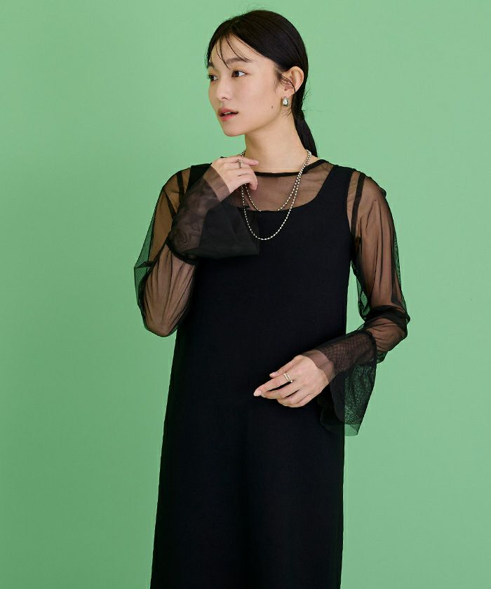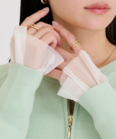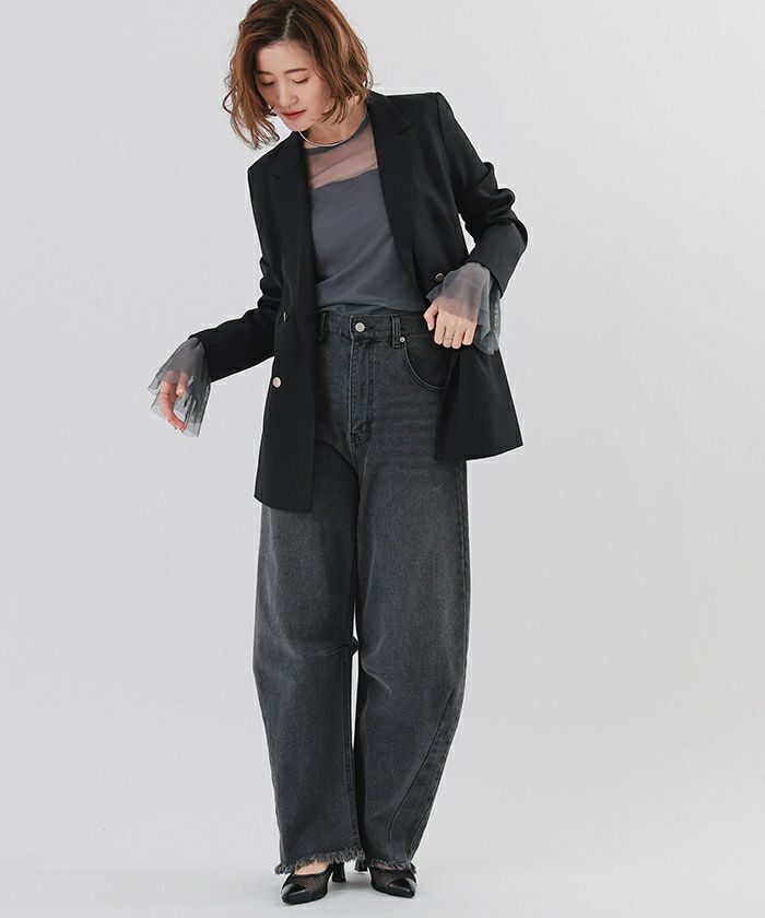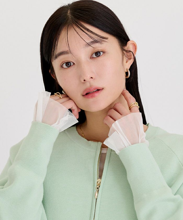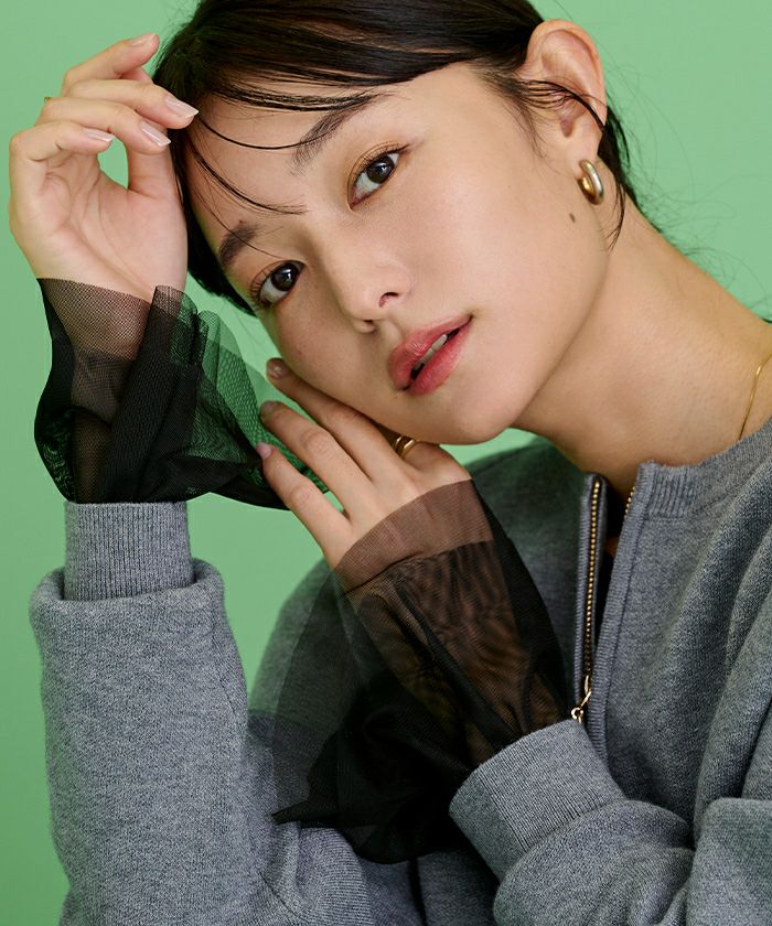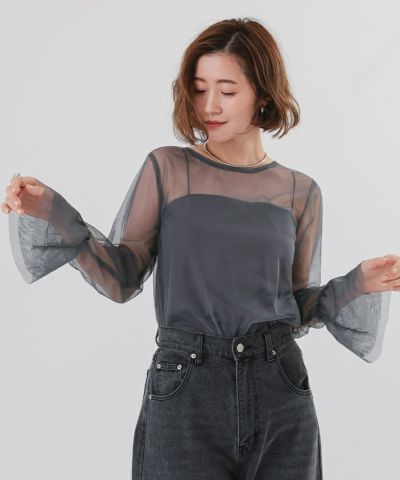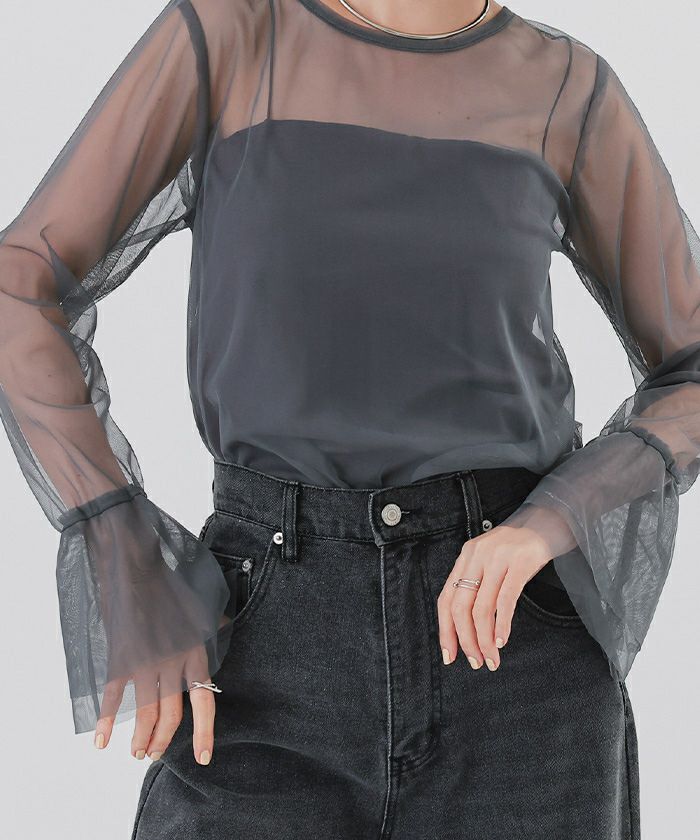シンプルなデザインながらも、シアー素材の透け感がスタイリングに軽やかさを与えます。