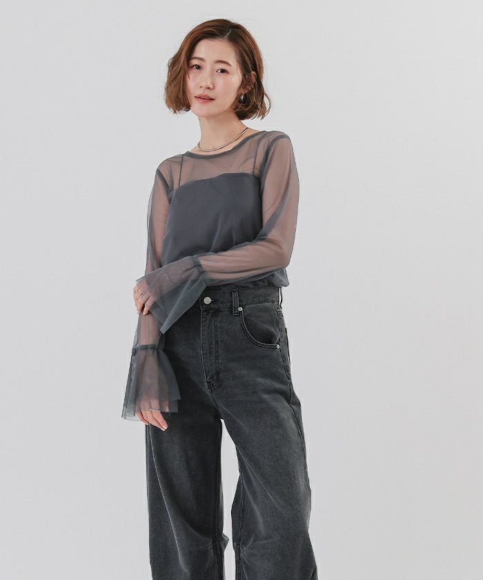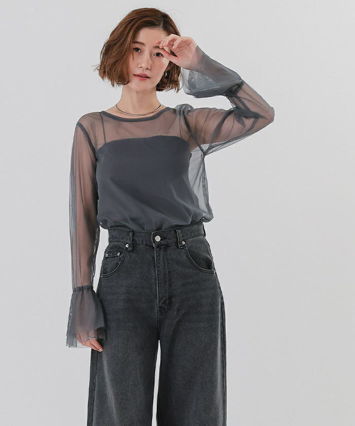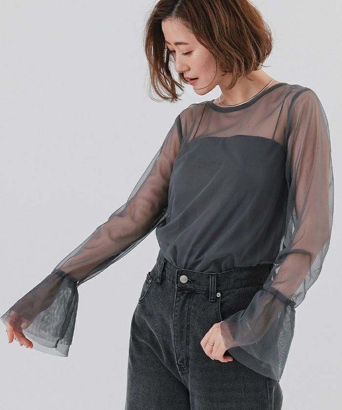 シアーフレアスリーブトップス【メール便可/100】