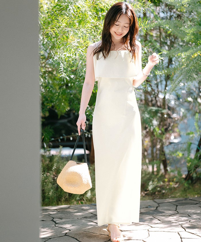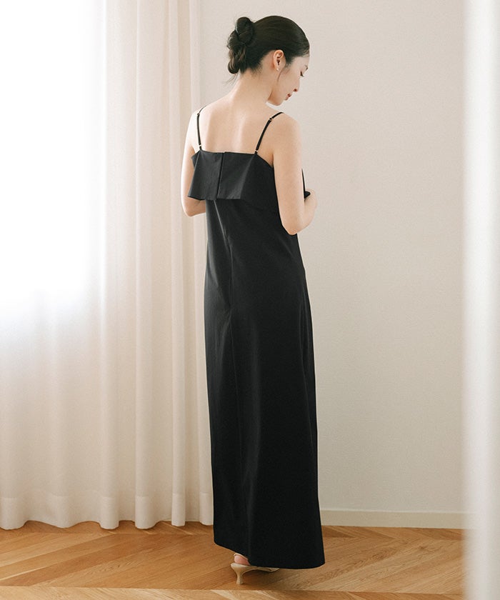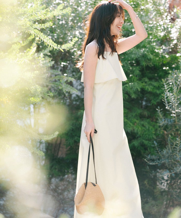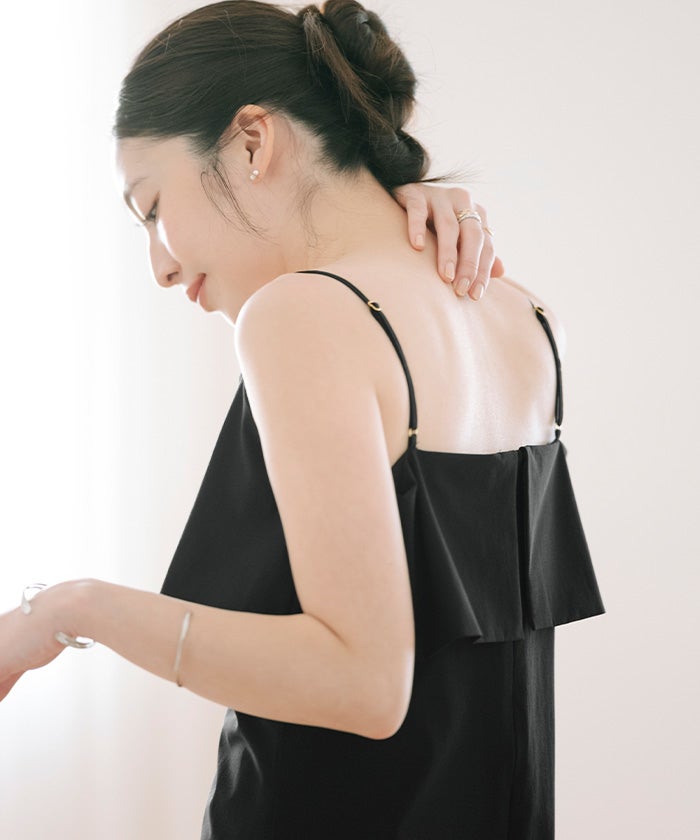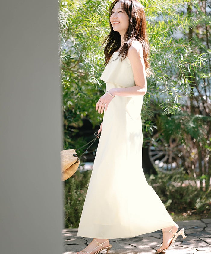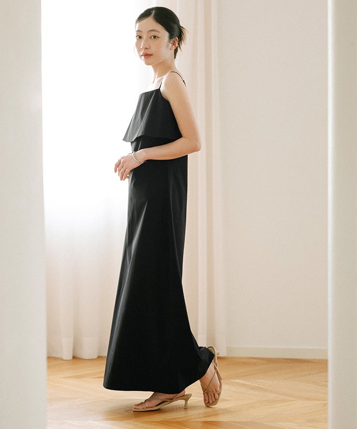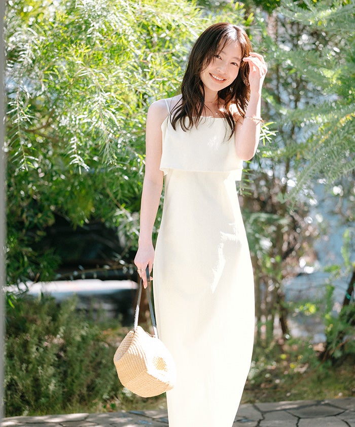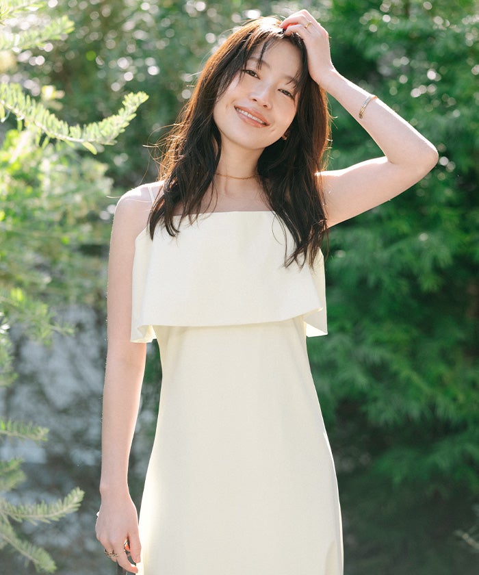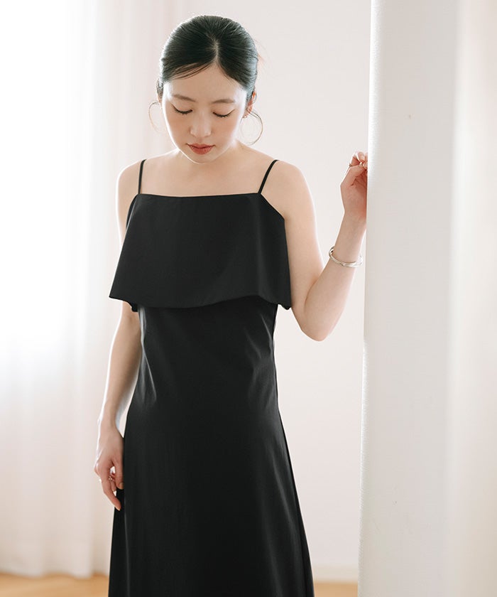 フレアのデザインが印象的な、キャミソールワンピース。