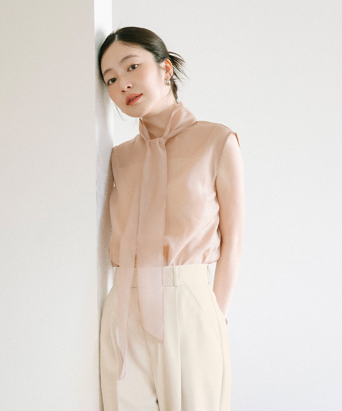 インナー付ノースリーブシアーボウタイブラウス