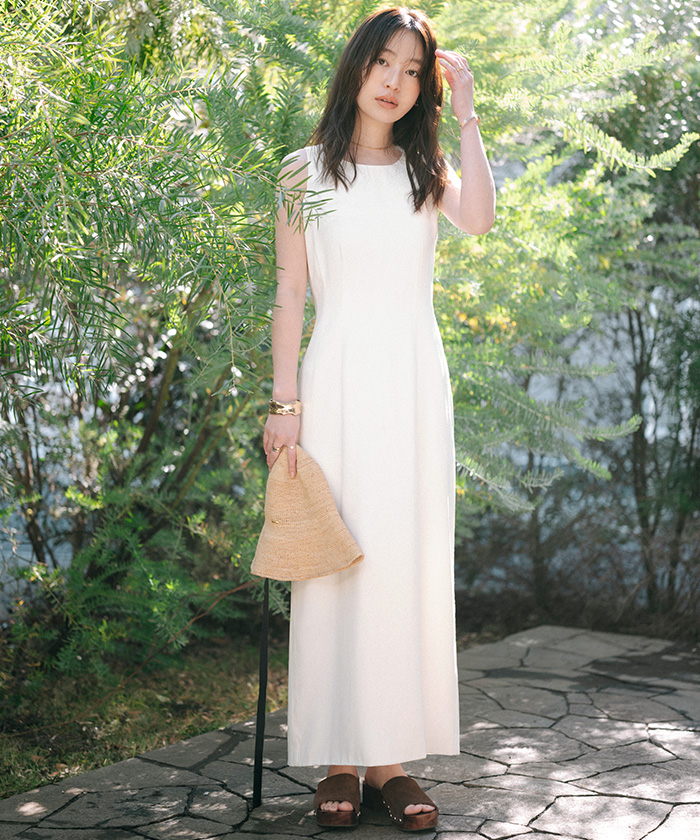 ウエストはシェイプしつつ、裾に広がるデザインがすっきりした印象に見せてくれます。
