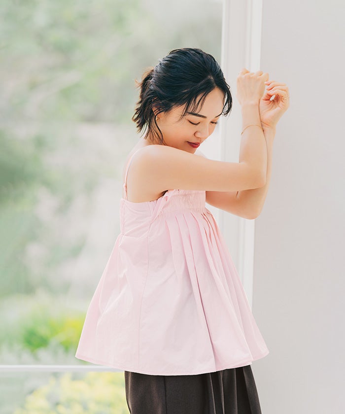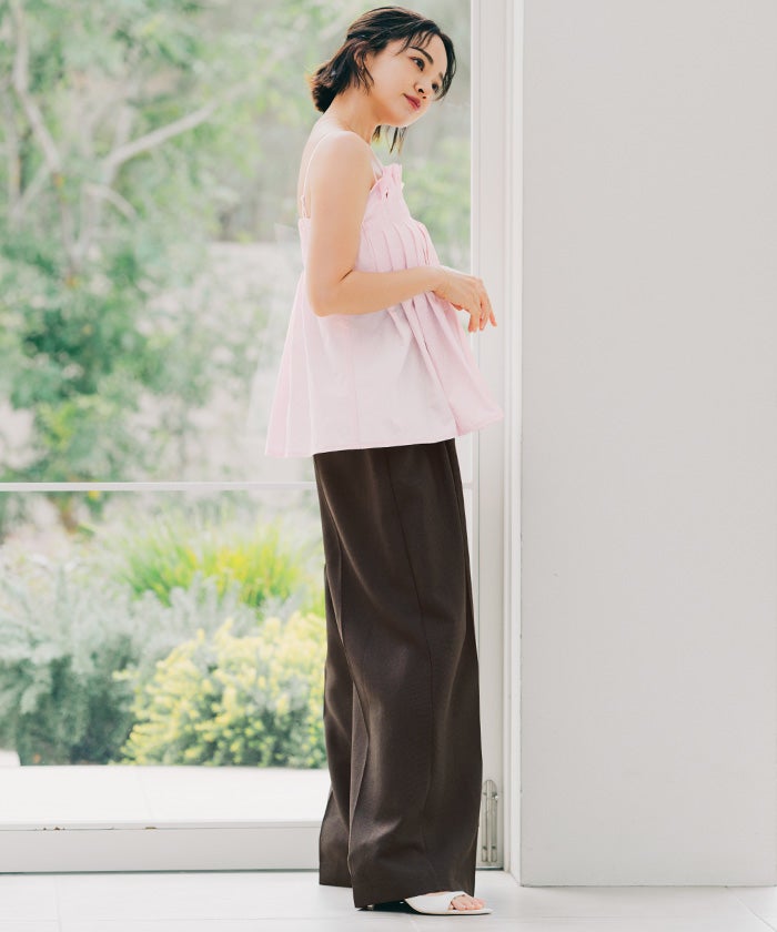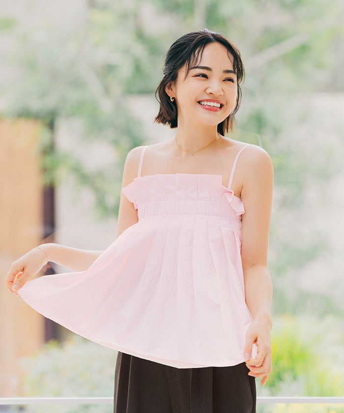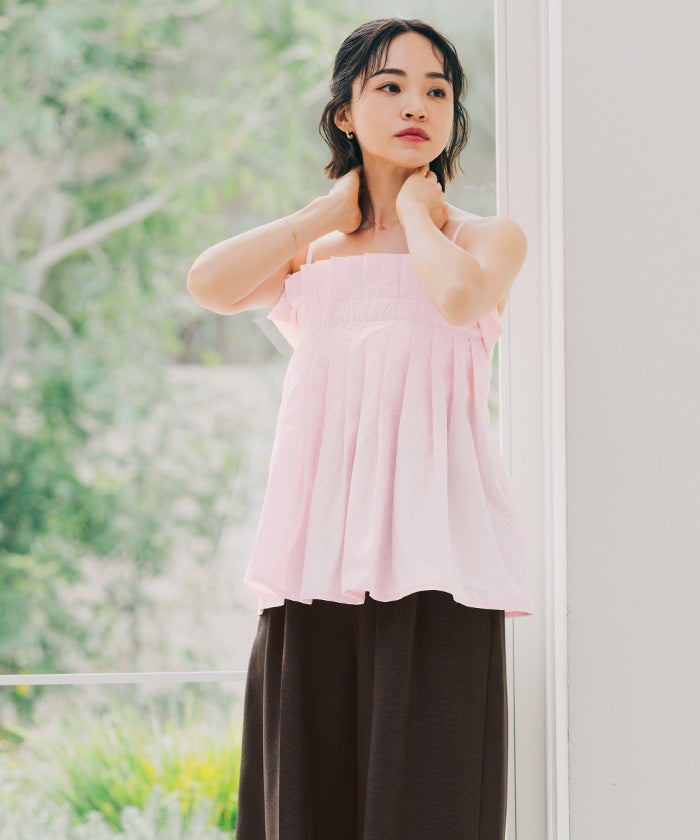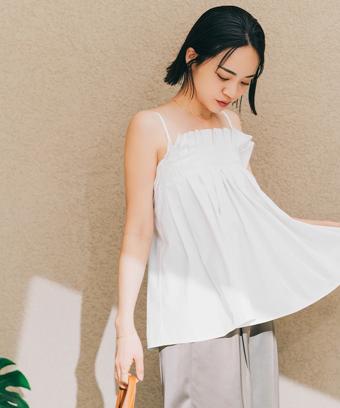 プリーツデザインが華やかなキャミソールトップス。