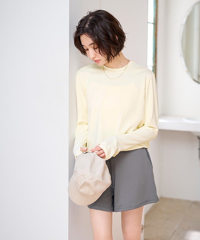 UVカット(UPF50+)機能を備えた素材を使用しており、日差しが気になるシーンでも安心。