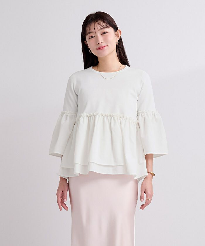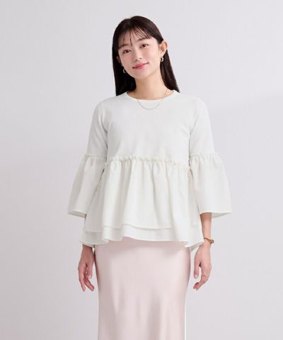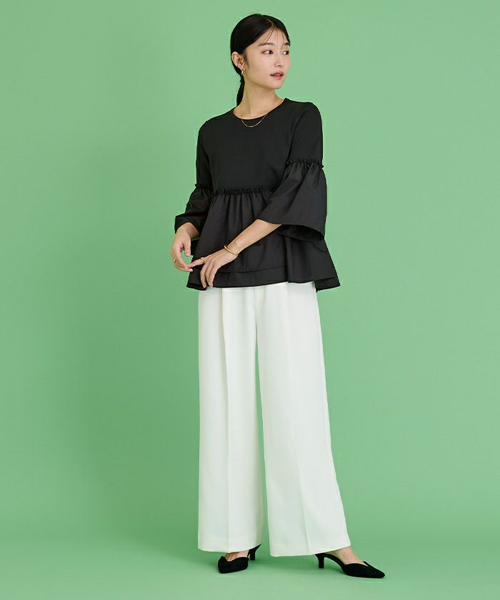 裾と袖口に広がるフレアが、カジュアルな中にも女性らしさを添えます。