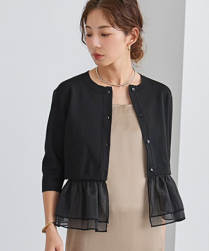 裾のシアー部分は取り外し可能で、気分やシーンに合わせてアレンジできるカーディガン。