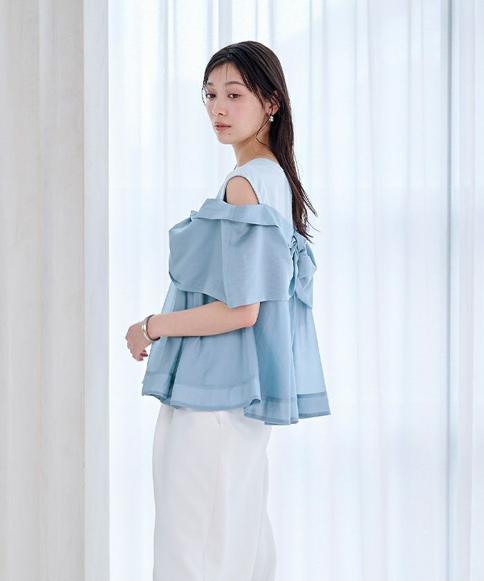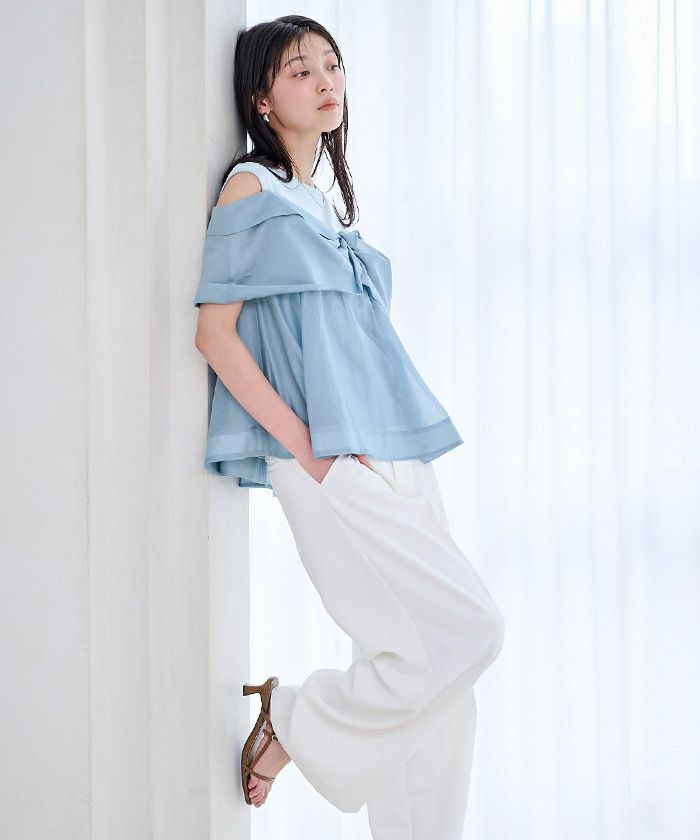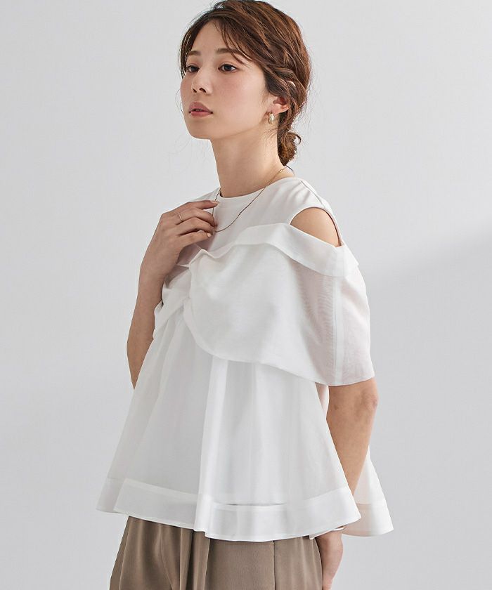 さらっとした肌触りのカットソー素材に、軽やかなシアー素材を組み合わせました。
