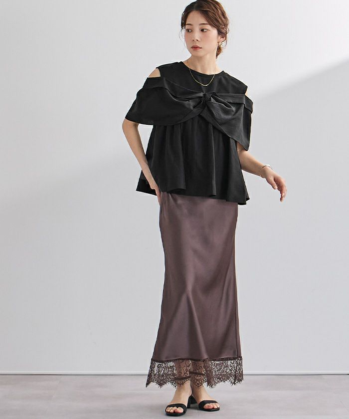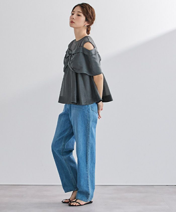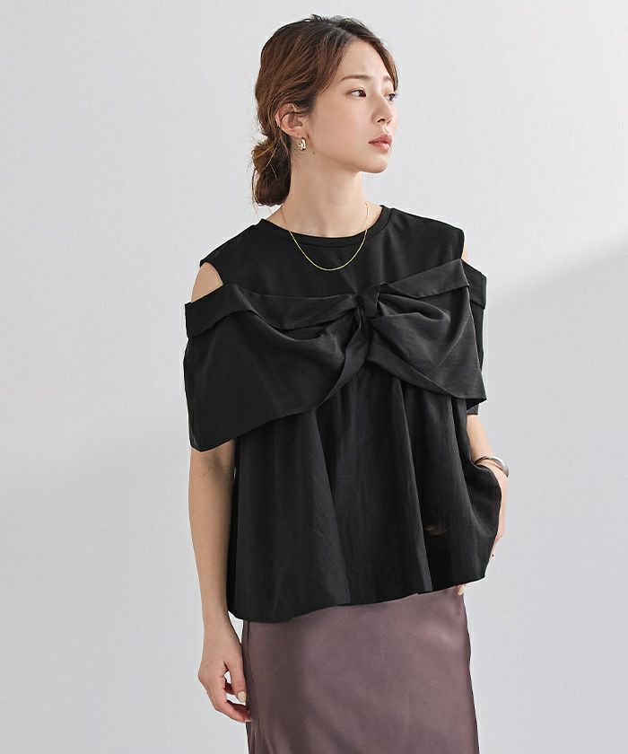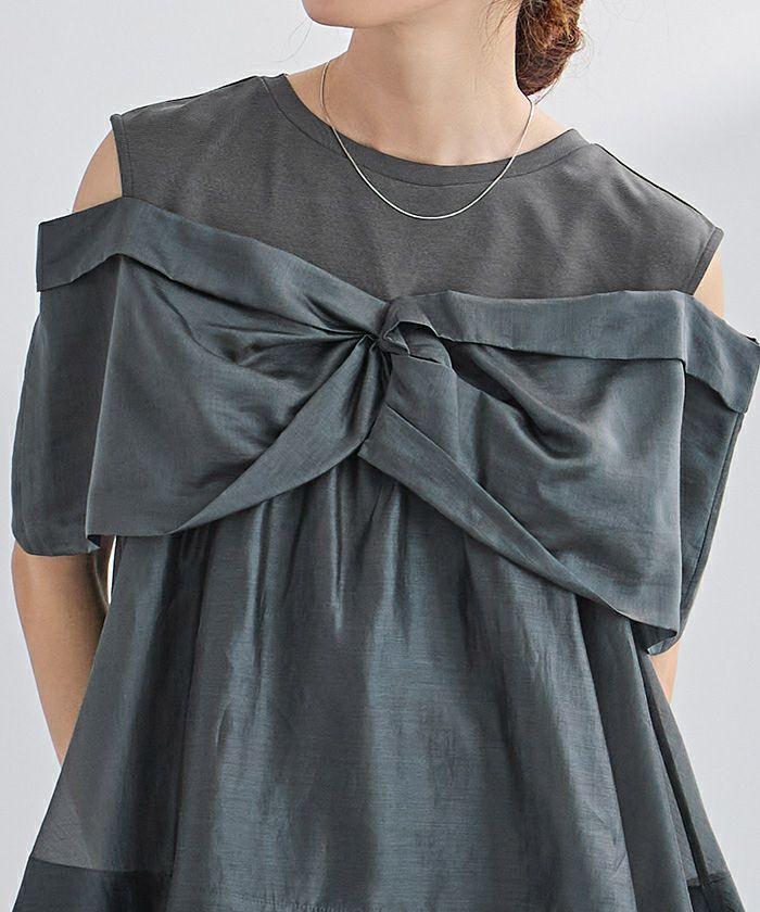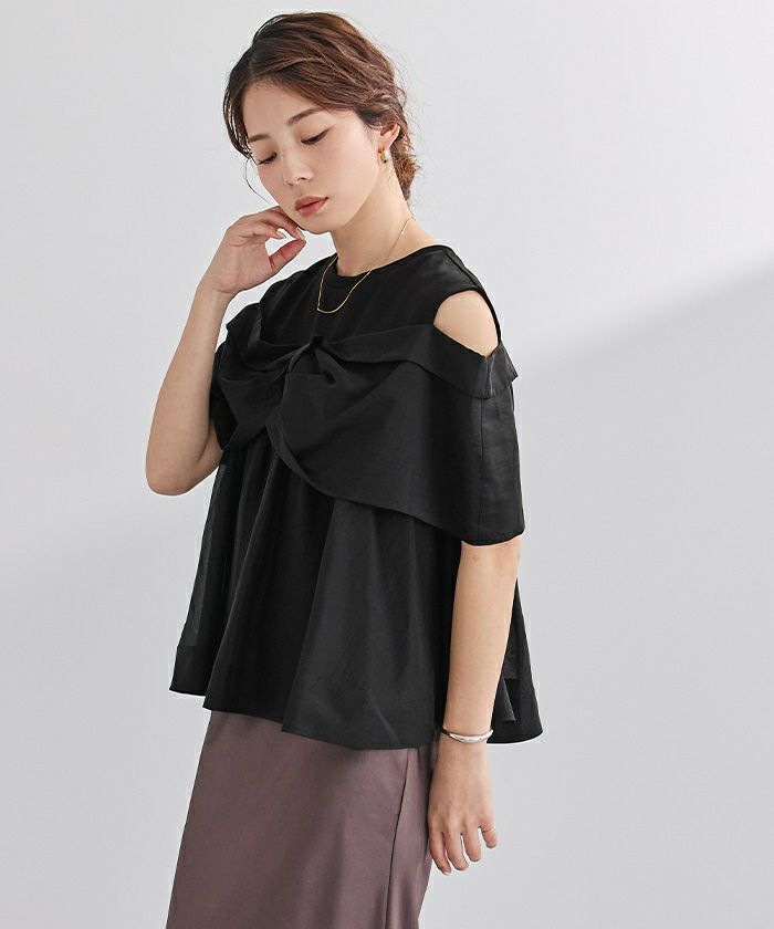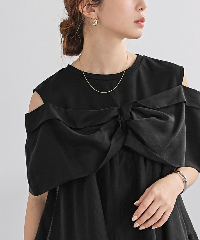 程よい肌見せを叶えるオープンショルダーデザインで、気になる二の腕まわりもカバーしてくれます〇