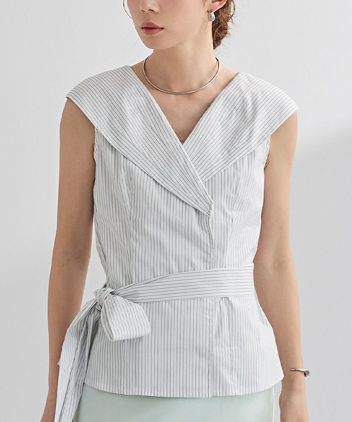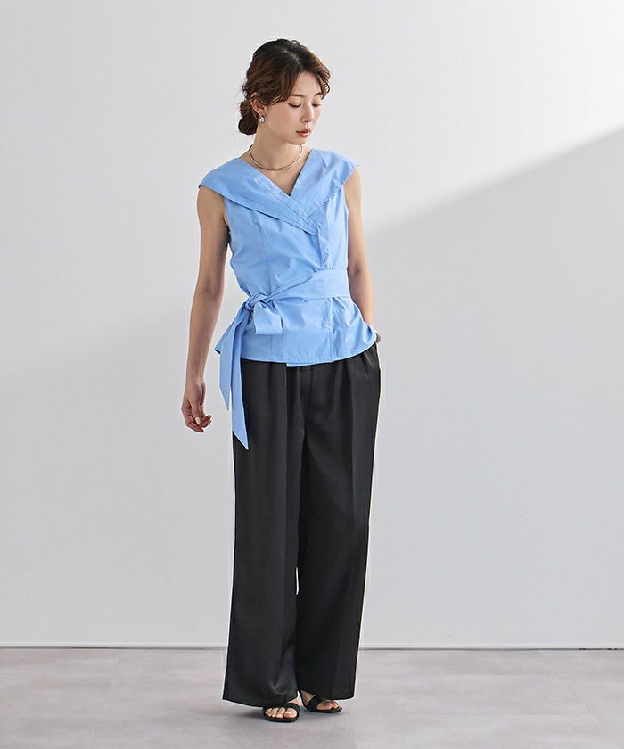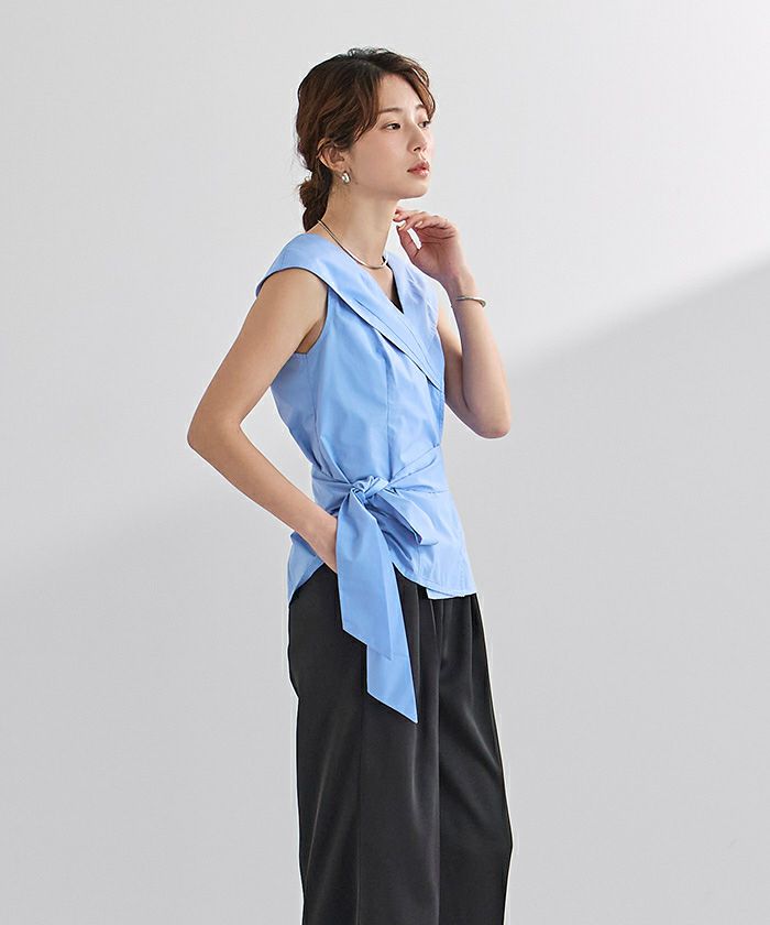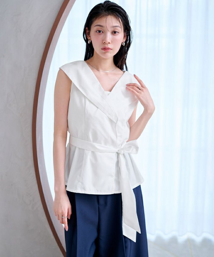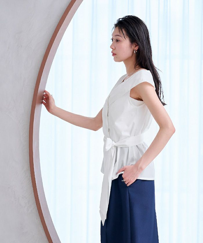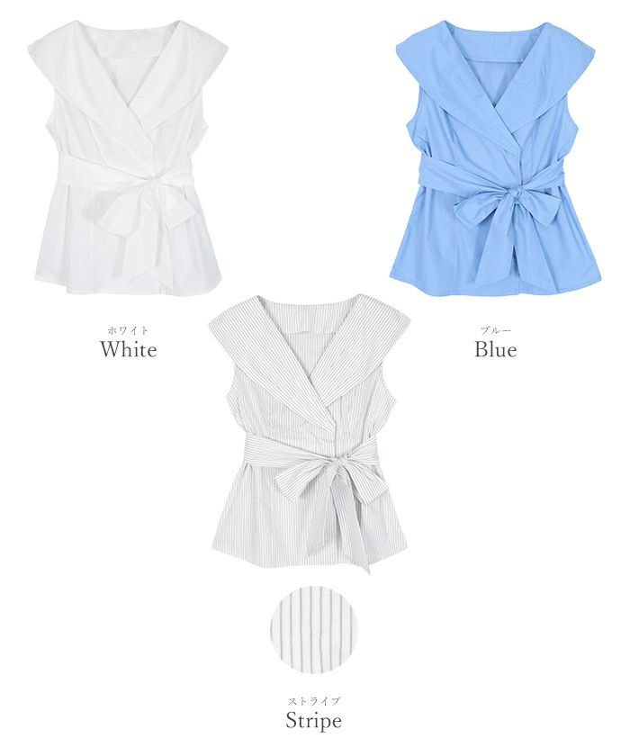ビッグカラーウエストリボンブラウス【メール便可/100】
