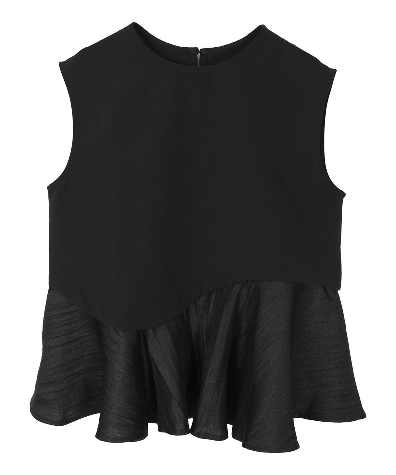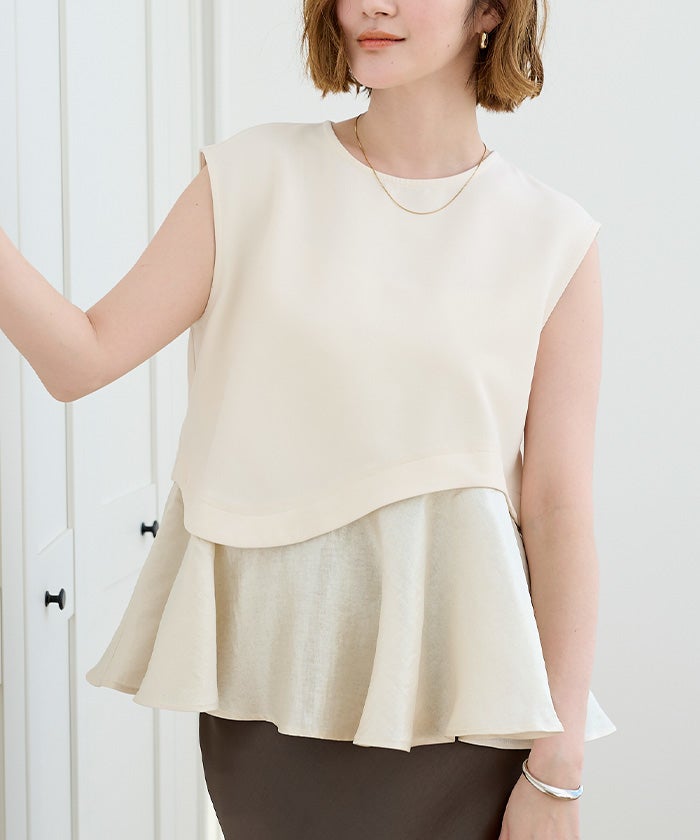 異素材切り替えが印象的な、フレンチスリーブトップス。