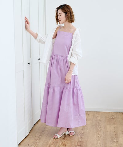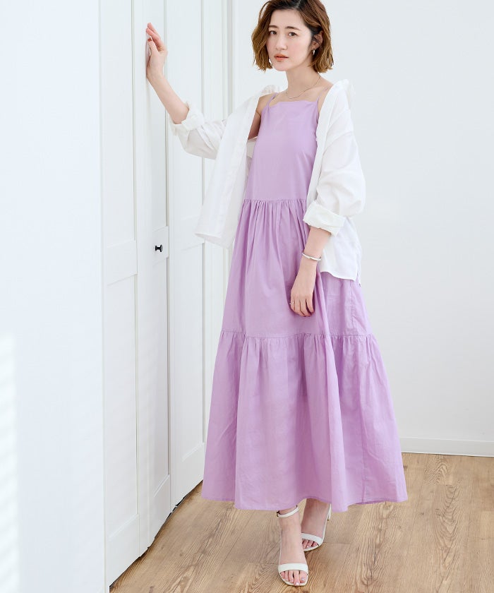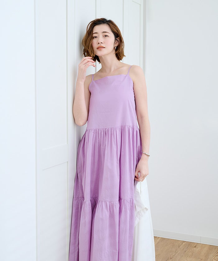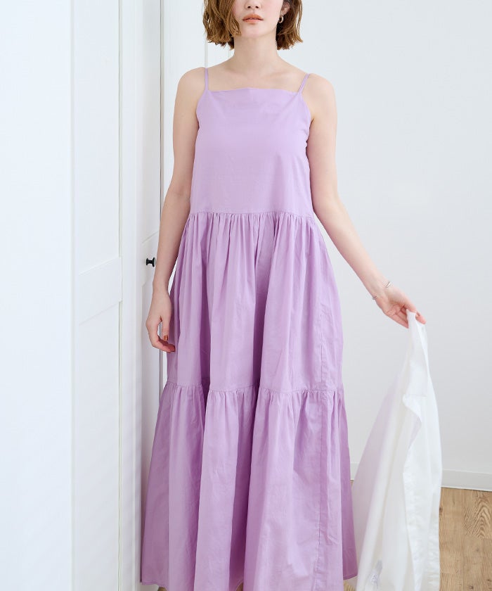 カップ付きで一枚でさらっと着られる、コットン素材のティアードワンピース。