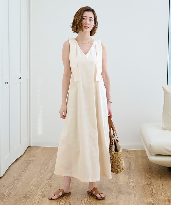身体のラインを拾いにくいAラインシルエットで、1枚でさらっと着用できるのが嬉しいポイントです。