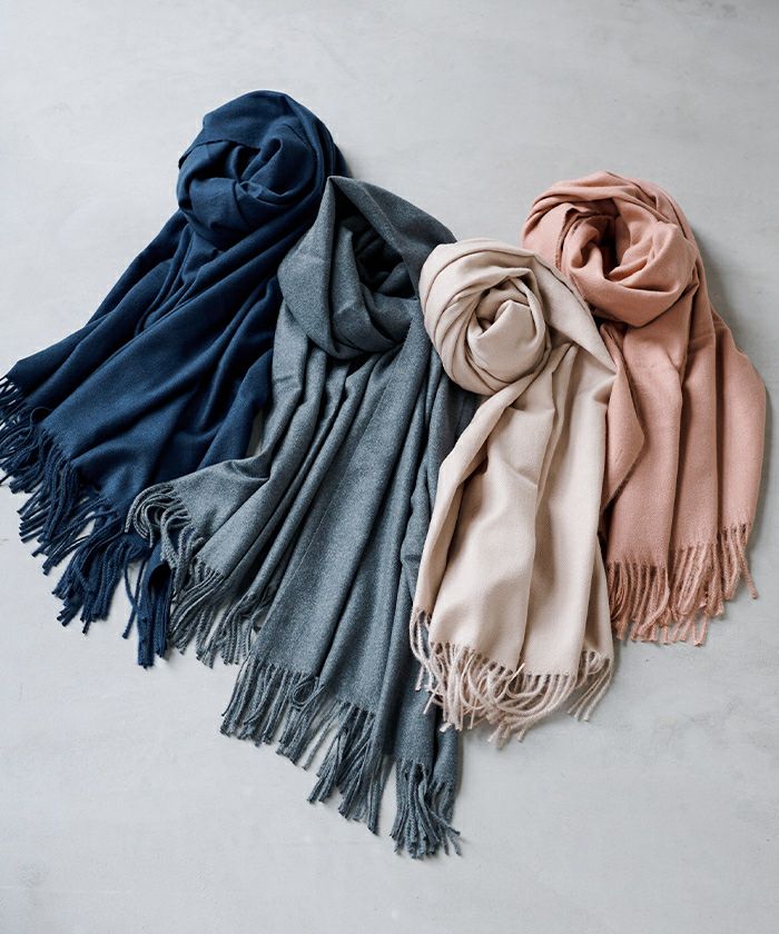 肌寒い季節に重宝する、肌触りの良い大判のカシミヤタッチストール。