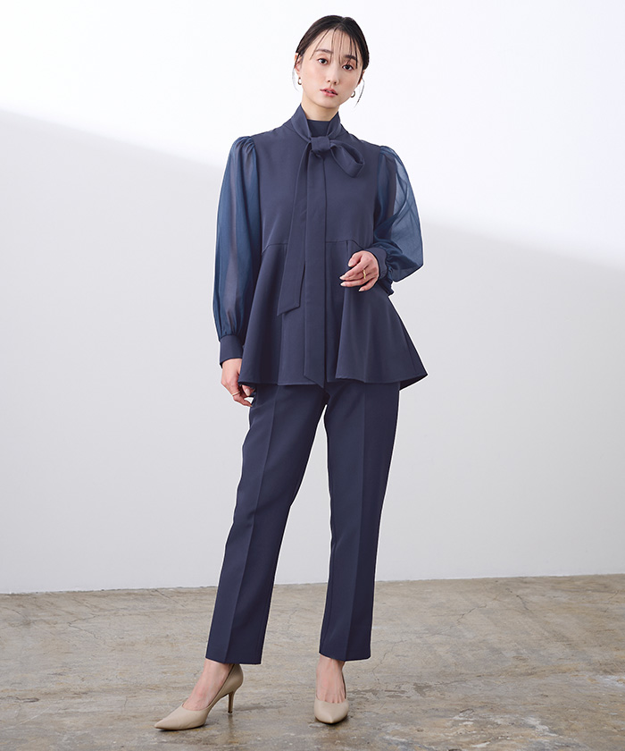 後ろのボタンを外せばスリット風になり、抜け感も演出できます。