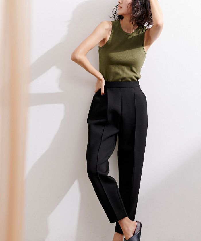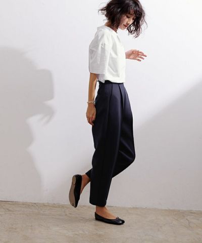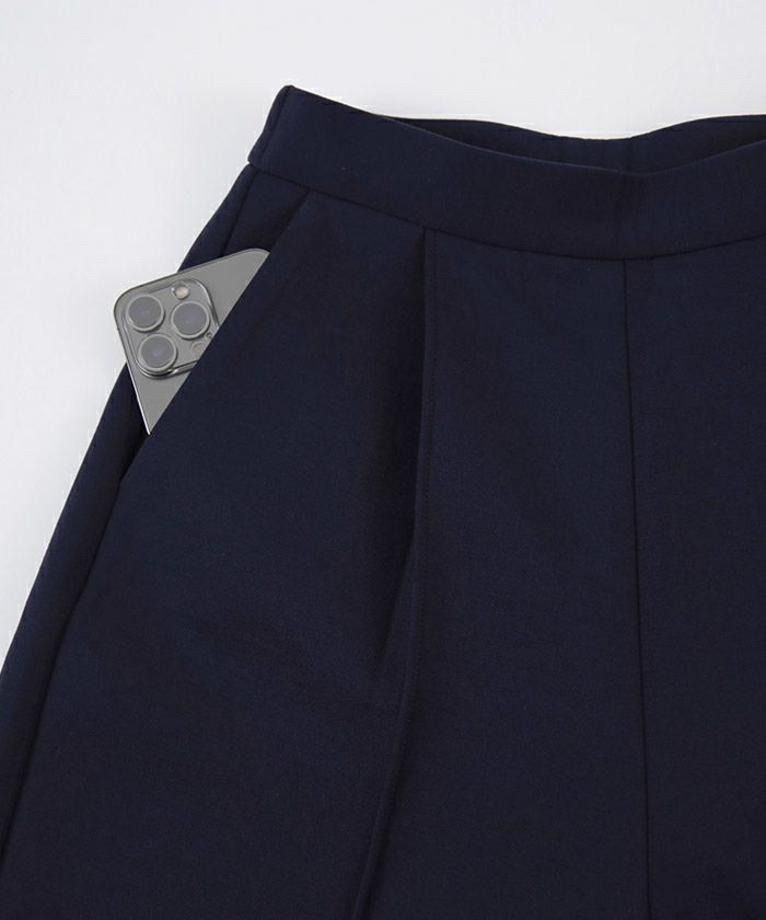 どんなトップスとも合わせやすいシンプルさで、着回し力が高い一枚。
