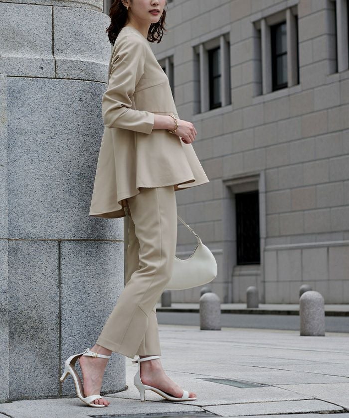 セレモニー用に購入しました。 生地もしっかりしており、後ろ丈に程よい長さがあり、とても安心です。 普段使いも出来るのも魅力でしょうが、ややカジュアルに感じます。 セットで、すっきりとコンパクトなノーカラージャケットを作って頂けると、 よりフォーマル場所にも着られて素敵だろうなと思いました。