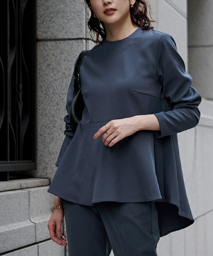 裾にかけて広がるデザインなので、お腹やおしり周りが隠せて嬉しいです。落ち着いたカラーバリエーションでどんなカラーのボトムスとも合います。私は女性らしく柔らかい印象になるネイビーがお気に入りです。