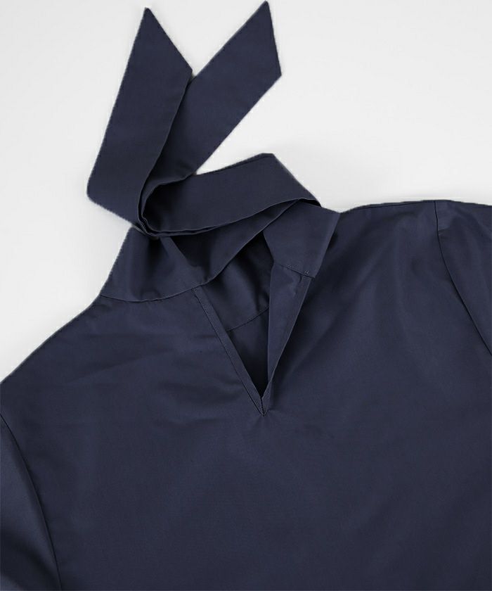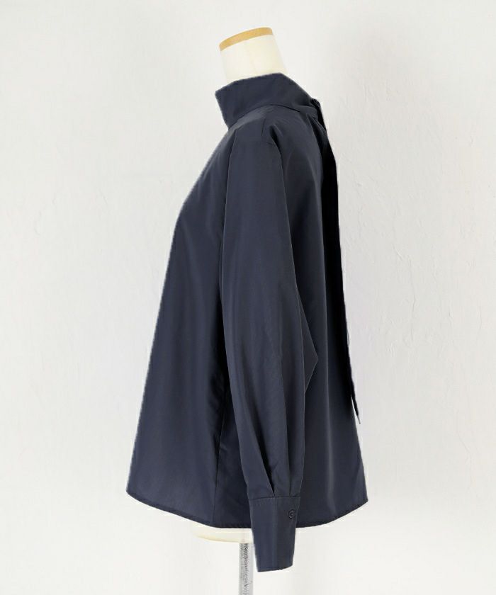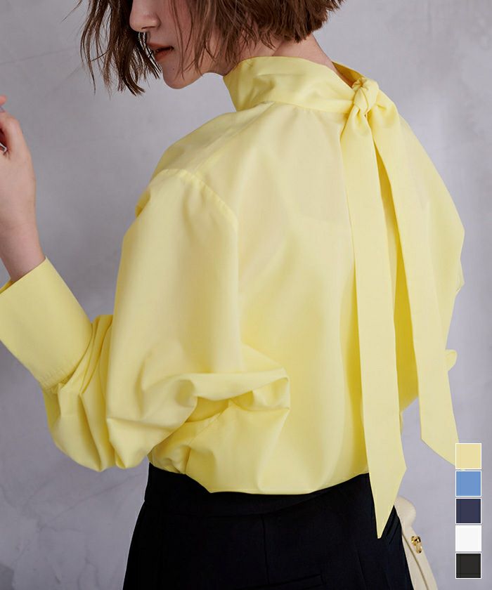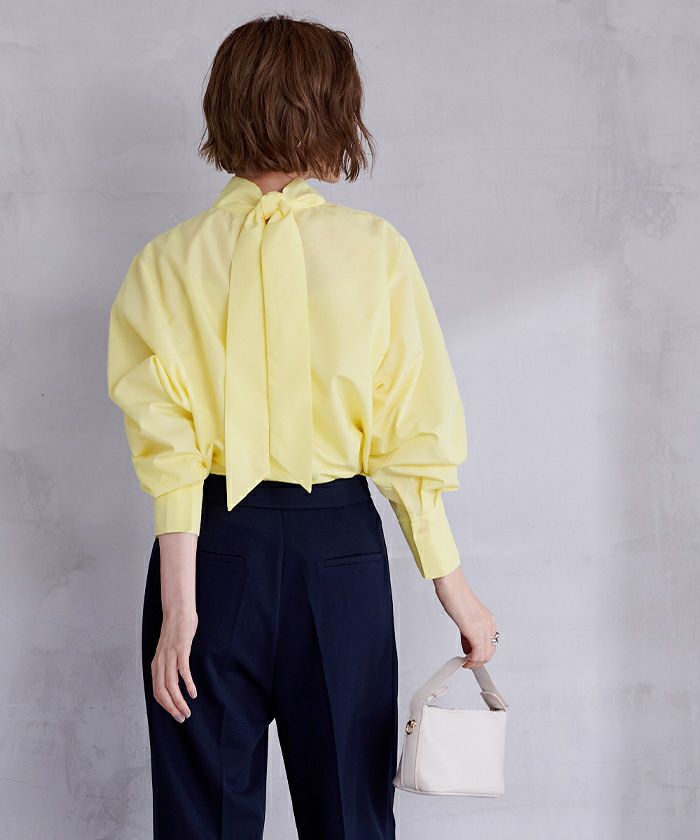 ボウタイデザインで後ろ姿までお洒落に仕上がるブラウス。