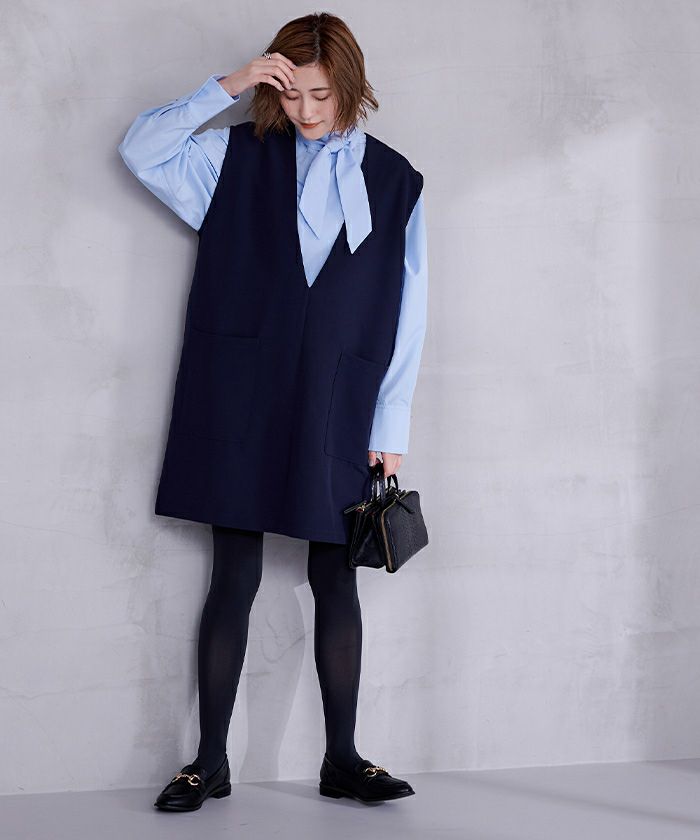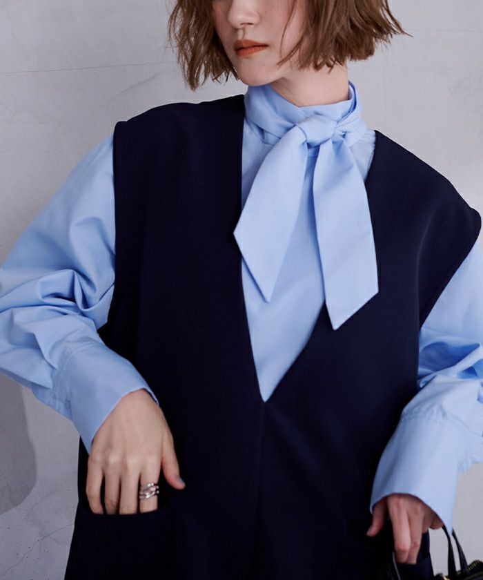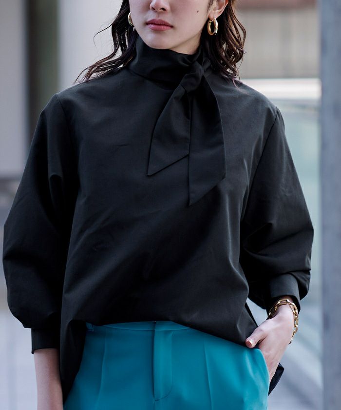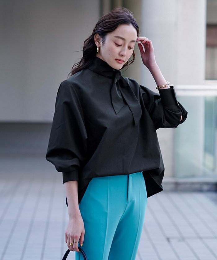 柔らかく肌なじみのいい素材で、シワになりにくいのも嬉しいポイントです。ボウタイが女性らしく上品な印象をプラスしてくれました。きれいめでオフィスシーンでも使えるので、デイリーユース出来ます。