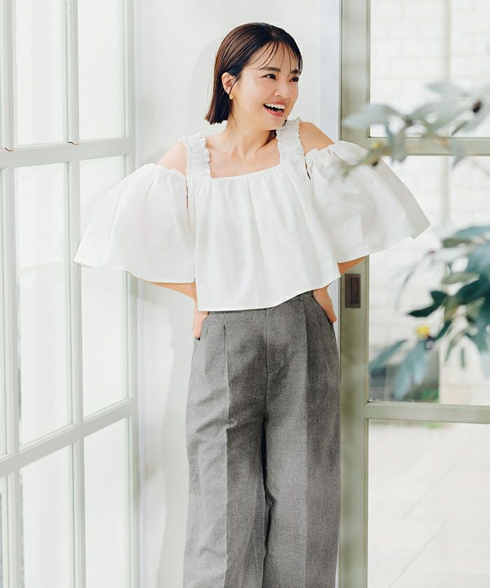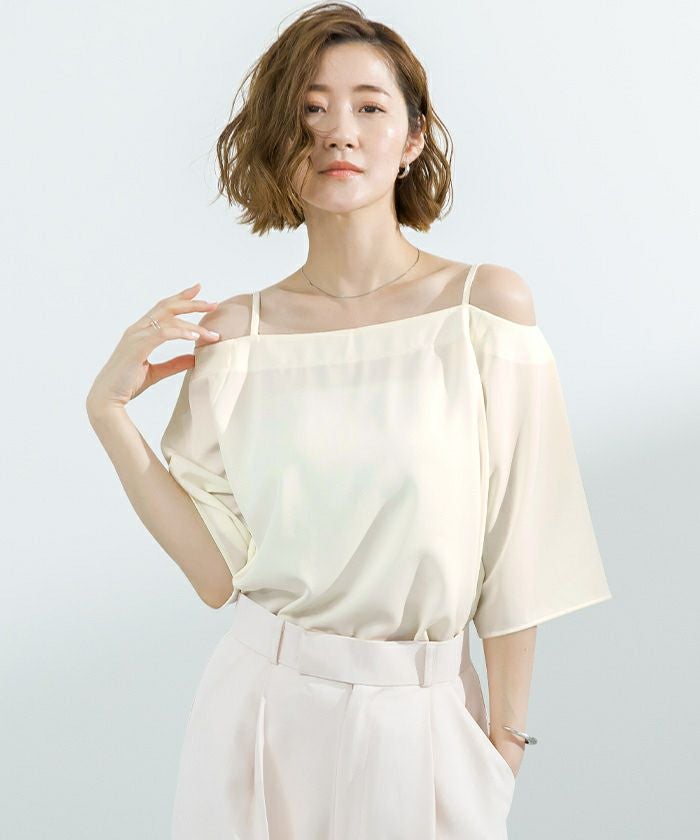 他の画像を見る 【春名亜美さんコラボアイテム】【洗える】【撥水】【機能性】【期間限定★SALE】 2wayフリルショルダートップス 定価 ¥ 5,489 のところ 価格 ¥ 3,842 税込 お気に入りに登録する