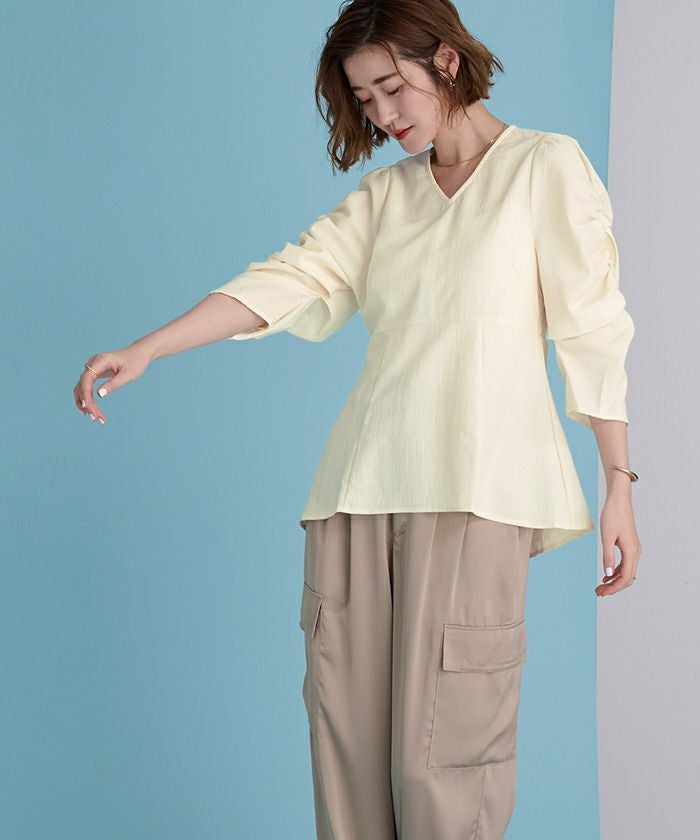 他の画像を見る 【洗える】【期間限定★2500均一】 シャーリングデザインスリーブVネックブラウス【メール便可/100】 定価 ¥ 5,489 のところ 価格 ¥ 2,500 税込 お気に入りに登録する