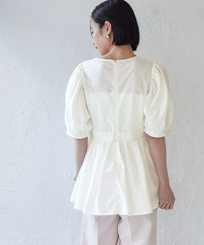 他の画像を見る 【セレモニーアイテム】【セットアップ可能】【期間限定★3000均一】 パフスリーブペプラムクルーネックブラウス 定価 ¥ 5,929 のところ 価格 ¥ 3,000 税込 お気に入りに登録する