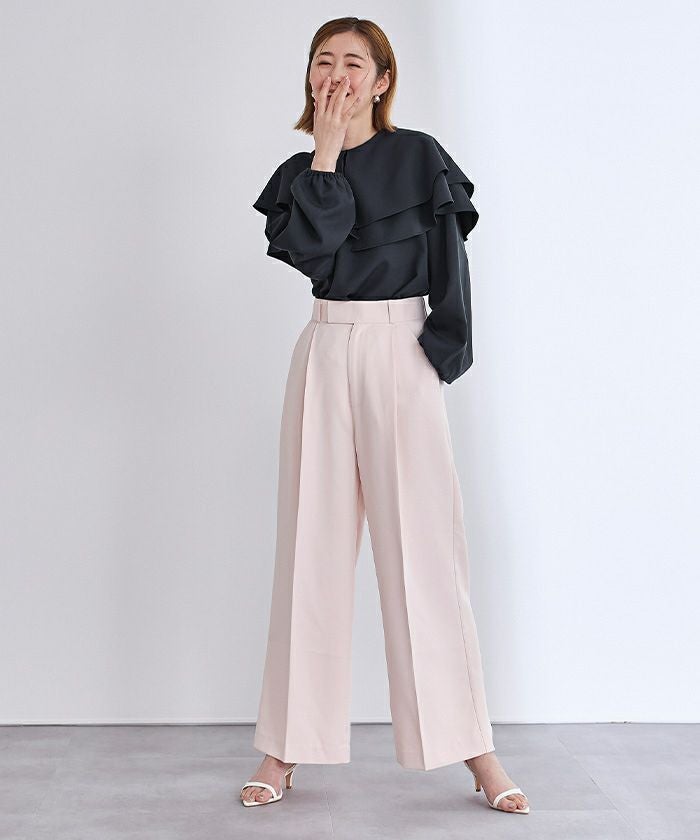 他の画像を見る 【セレモニーアイテム】【セットアップ可能】【洗える】【大きいサイズ有】【期間限定★SALE】 1タックセンタープレスワイドパンツ 定価 ¥ 7,689 のところ 価格 ¥ 3,844 税込 お気に入りに登録する