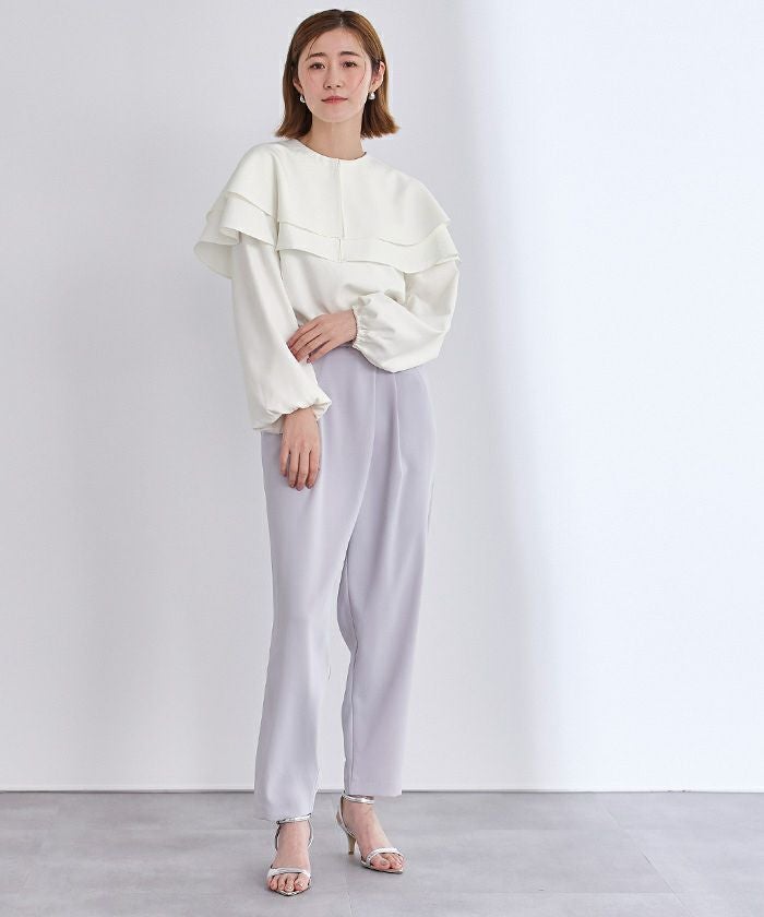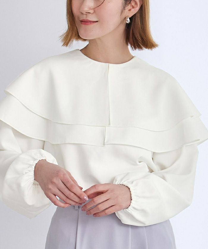 他の画像を見る 【星玲奈さんコラボアイテム】【セレモニーアイテム】【洗える】【期間限定★3500均一】 2way襟付タックペプラムトップス 定価 ¥ 8,789 のところ 価格 ¥ 3,500 税込 お気に入りに登録する