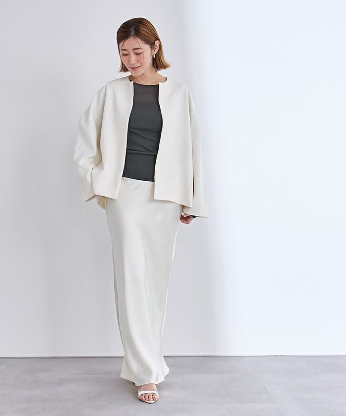 他の画像を見る 【セレモニーアイテム】【セットアップ可能】【期間限定★3500均一】 ギャザーフレアスリーブノーカラージャケット 定価 ¥ 8,789 のところ 価格 ¥ 3,500 税込 お気に入りに登録する