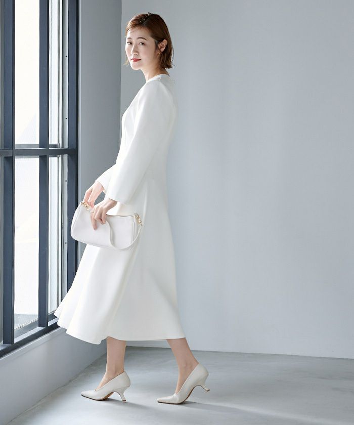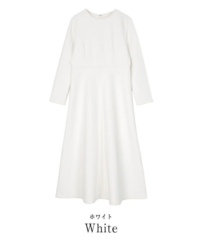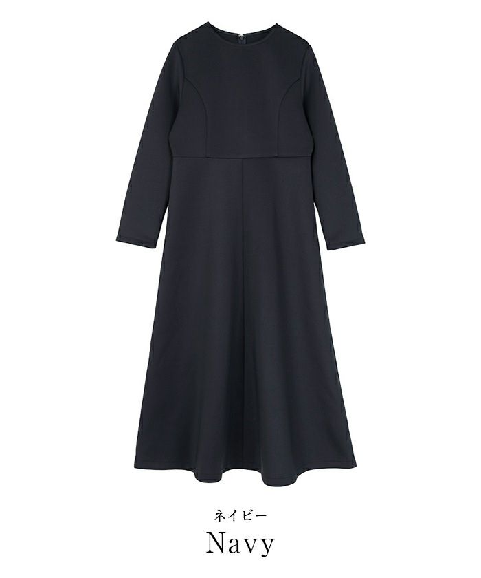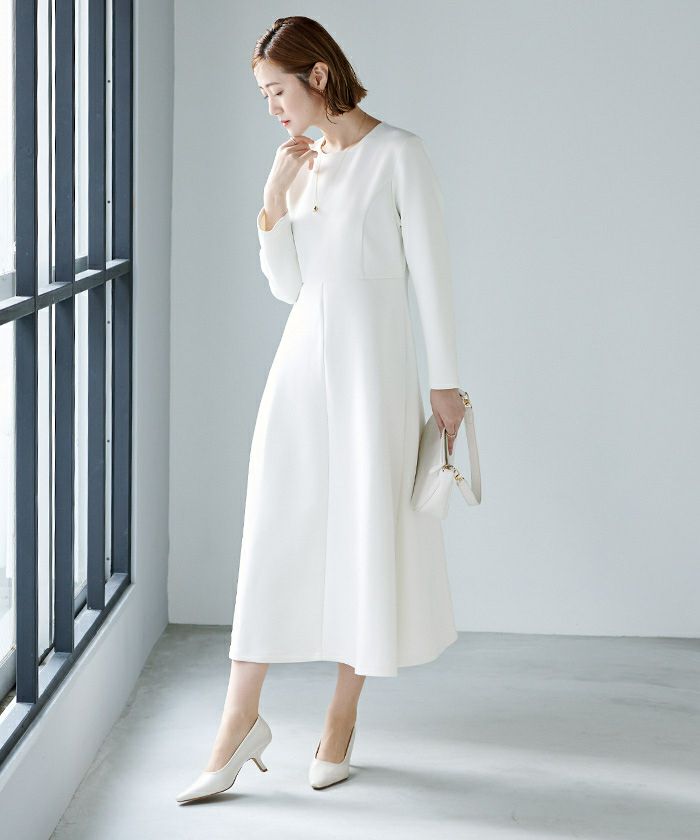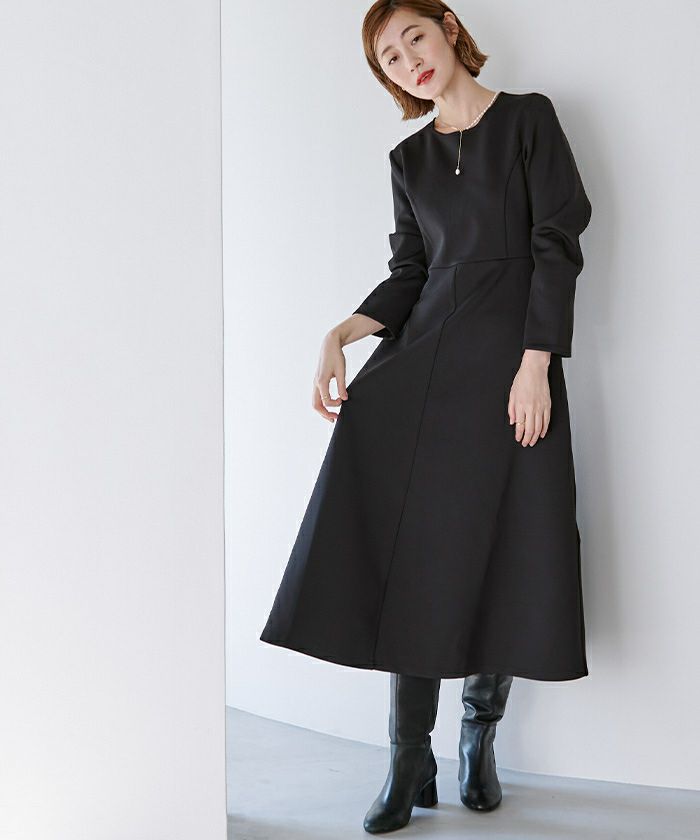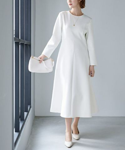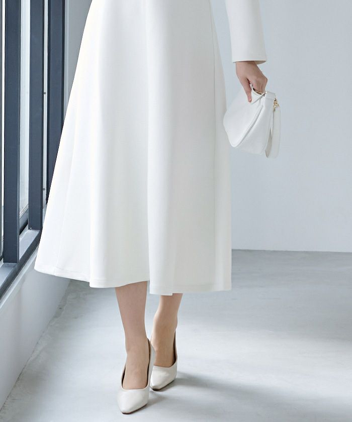 ハリ感のあるボンディング素材で綺麗なフレアシルエットが作り出されるワンピース。