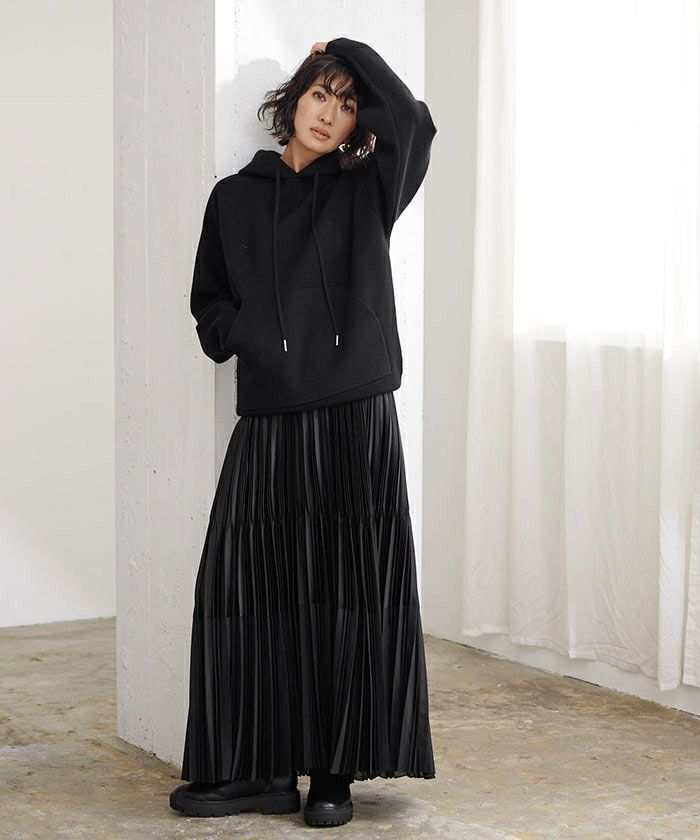 何度か着用しましたがニット生地なのに毛玉にならずシワもつかず、フードの立ち上がりも良く素敵なパーカーです。先に杢グレーのパーカーのみをを購入してとても良かったのでブラックも上下追加購入しました。