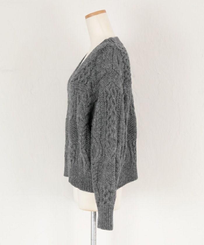ボリューム感がありながらもVネックですっきり見えするケーブルニット。