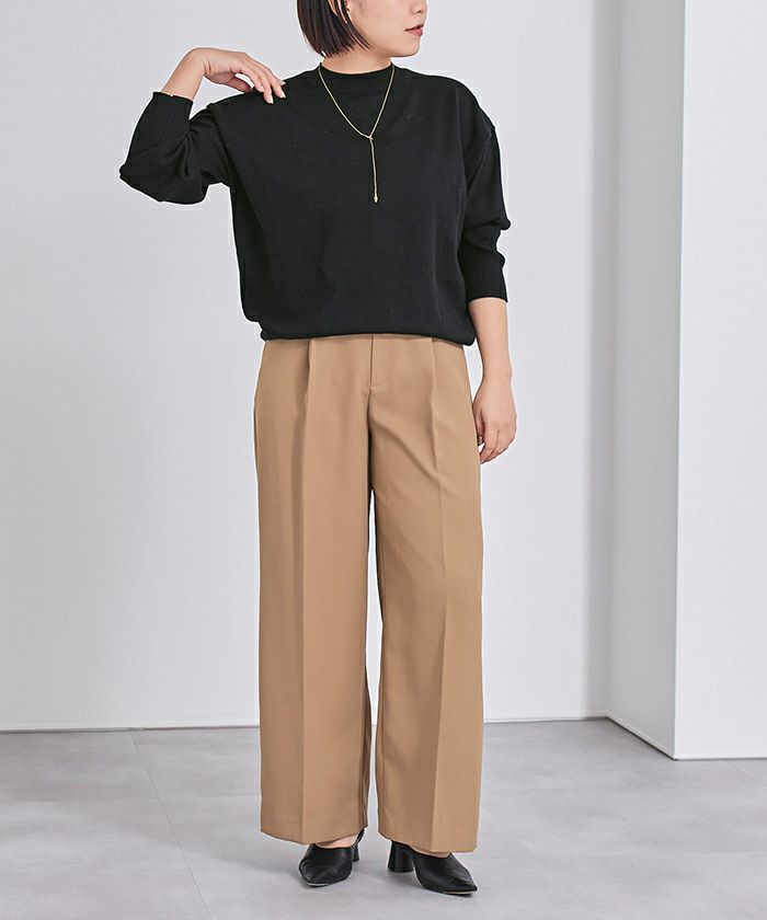 スウェットライクに着られる、大人っぽいクルーネックデザイン。