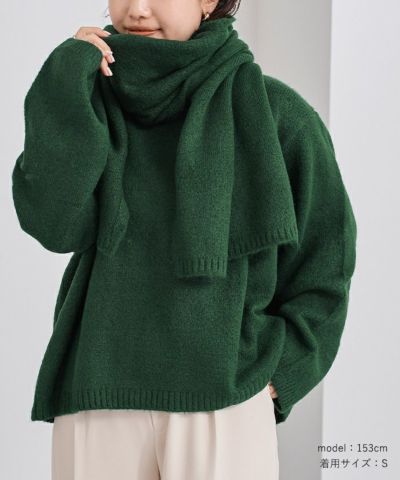 ストール付ラウンドネックニット