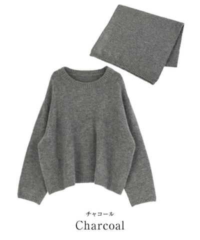 ストールがセットになった使い勝手の良いラウンドネックニット。