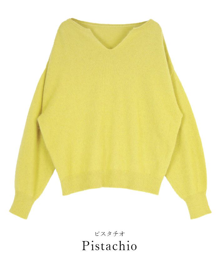 カラーにひかれてピスタチオのSサイズを購入しました。 毛足の長いニットもキーネックだとスッキリ見えるので着やすかったです。