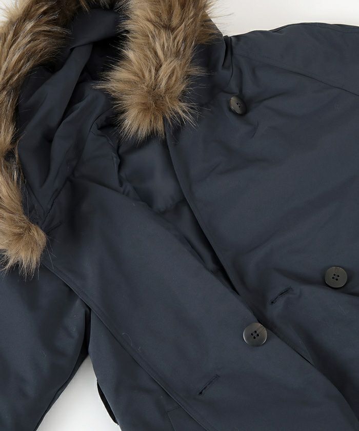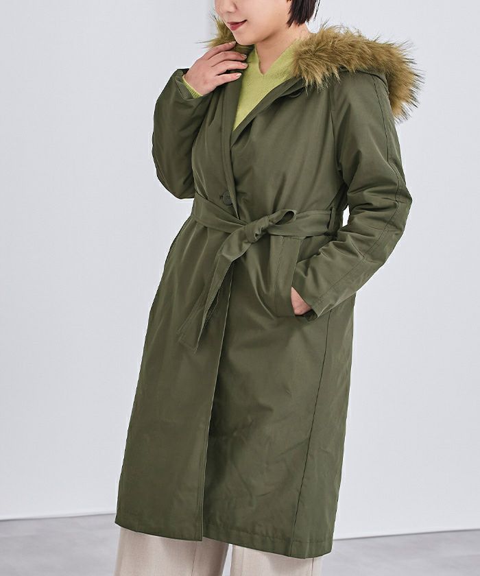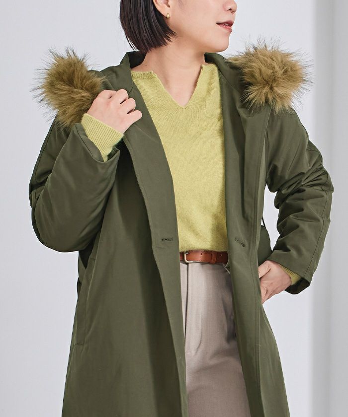 フードのフェイクファーは取り外しが可能で、気分に合わせた着こなしが可能。