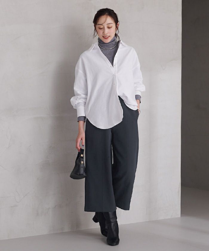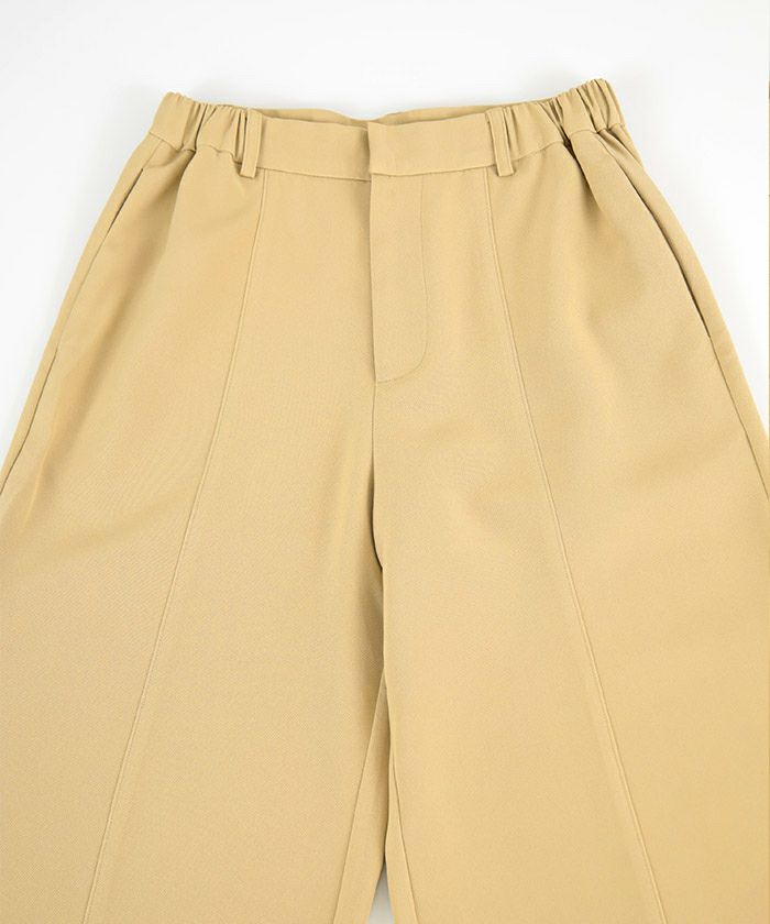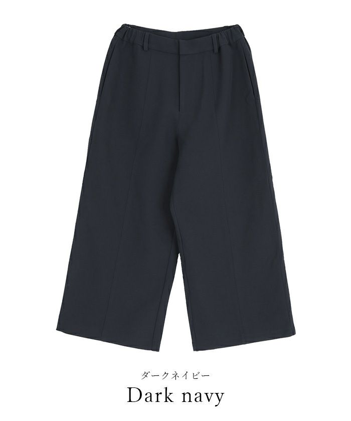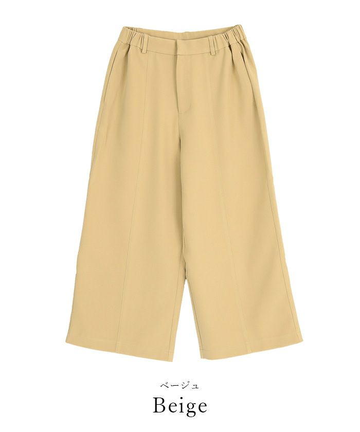 商品情報 脚のラインをきれいに見せるセンターピンタック入りのワイドパンツ。