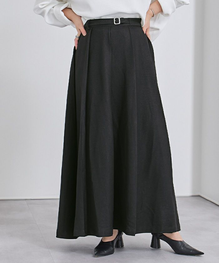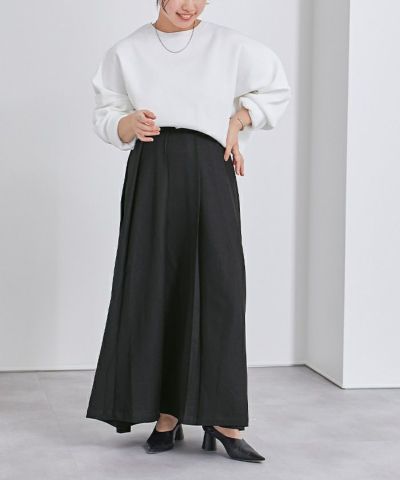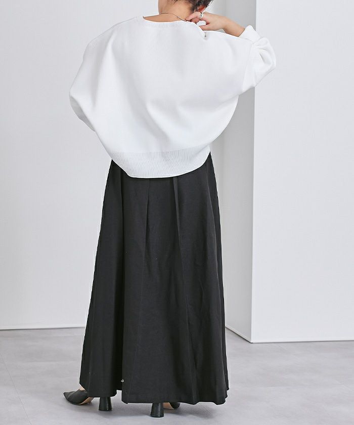 腰回りのシルエットを拾いにくい太めのプリーツにしました。