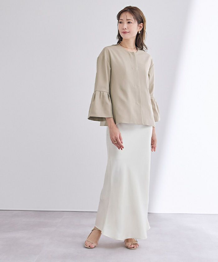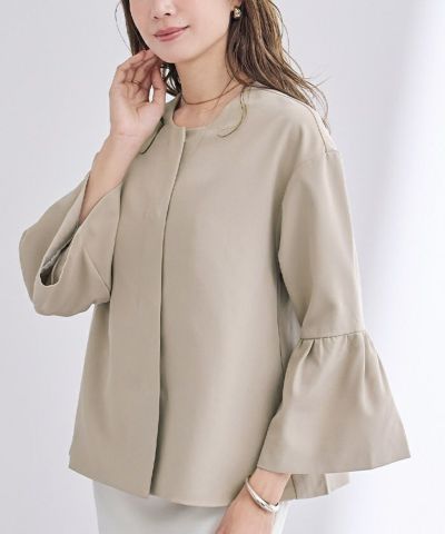 切替部分にギャザーの入ったフレアスリーブでふんわりした袖に仕上げました。