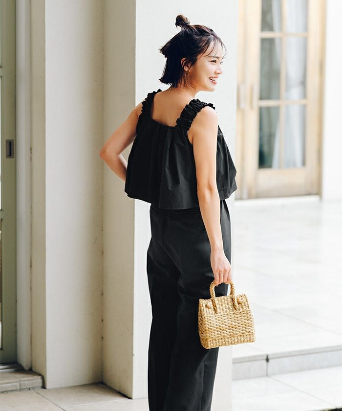 肩にはフリルデザインを施し華やかな1枚に。