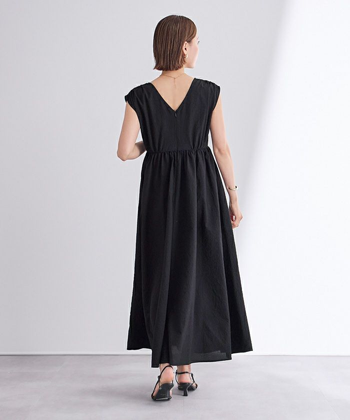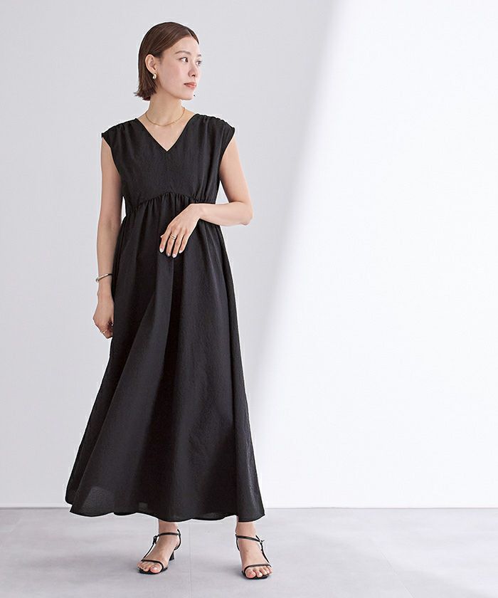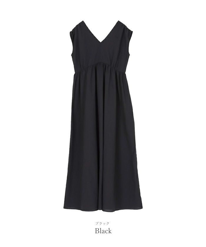 前後Vネックギャザーワンピース